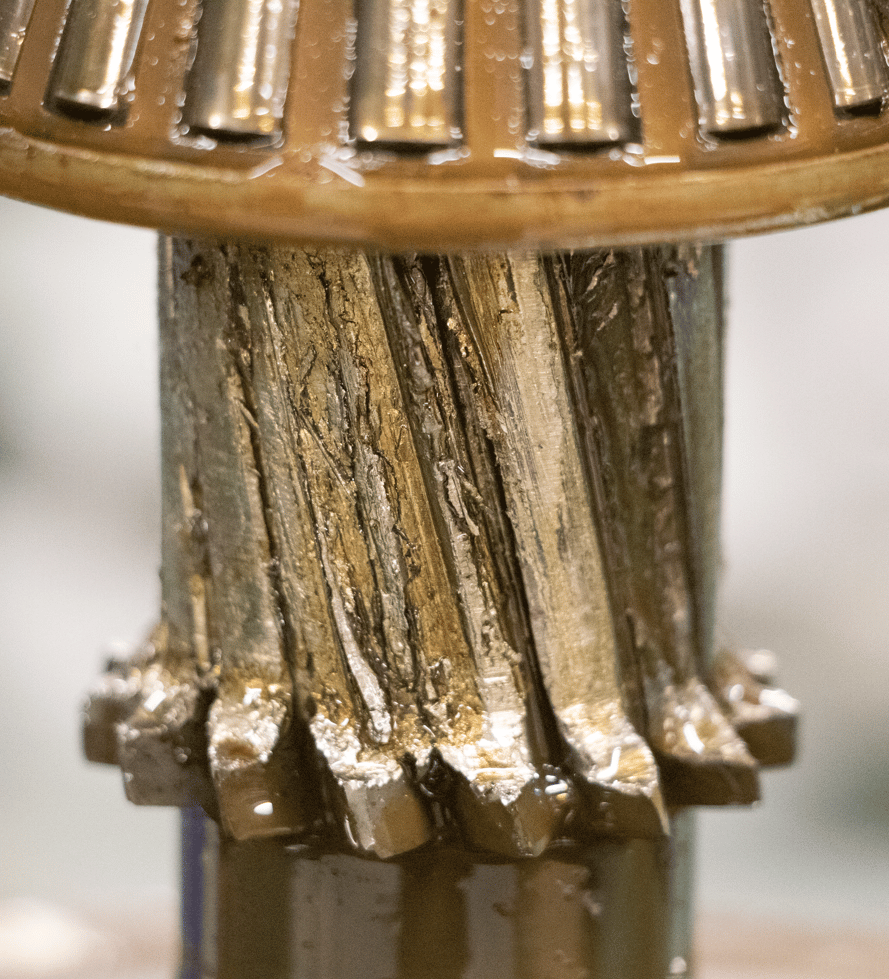 Following the initial inspection of the outside, we opened up the unit to pinpoint the main point of failure. He discovered the point of failure was the second stage of gearing (pictured below), as it had all teeth sheared off of it. This repair generally occurs after long periods of overload.